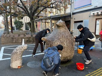 本日は、活動時に松山市の職員の方々により狸広場の狸像の清掃も実施されました。